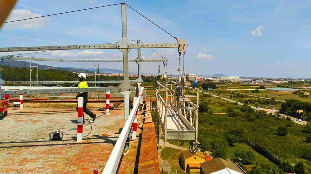En los paramentos lisos de gran superficie, los andamios colgantes efectúan una labor  ……